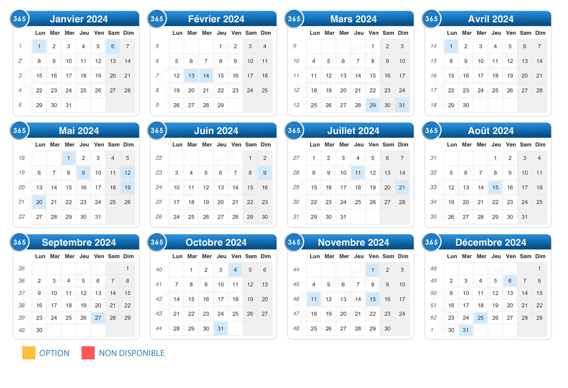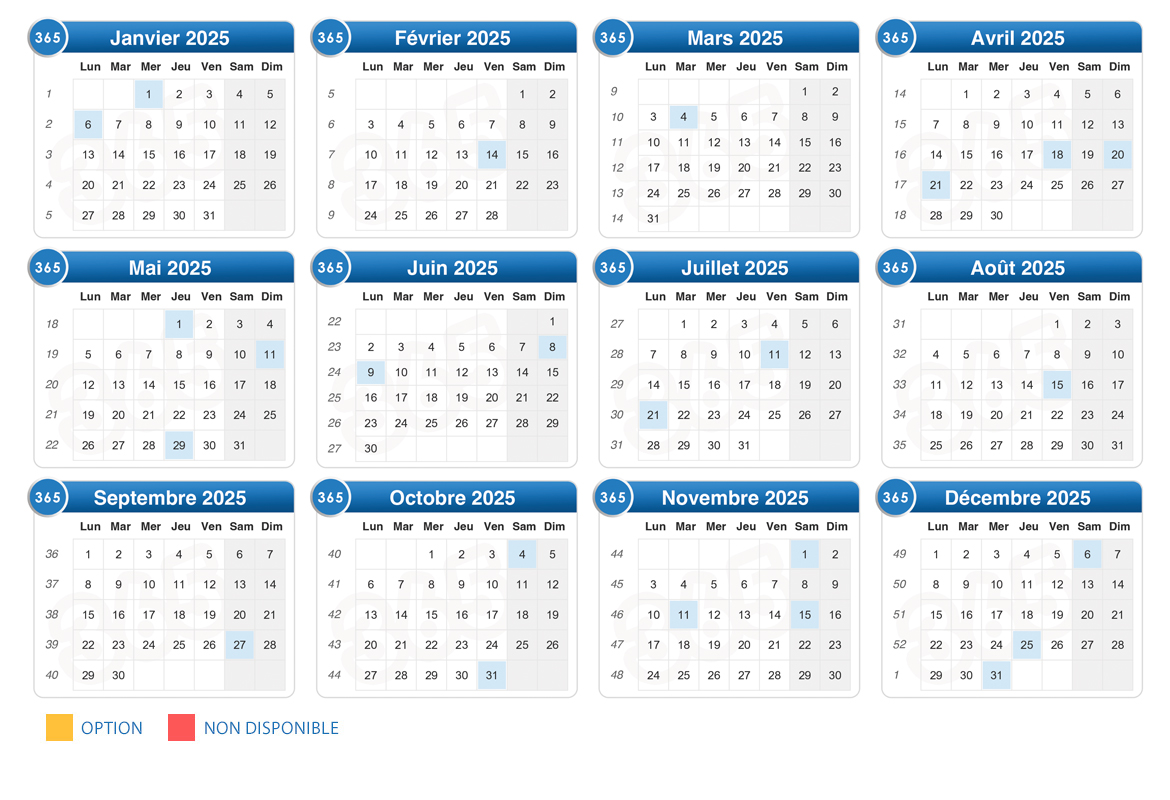 Voici le calendrier des disponibilités